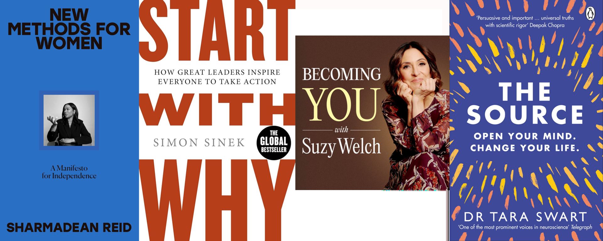 New Methods for Women by Sharmadean Reid, Start With Why by Simon Sinek, Becoming You with Suzy Welch podcast, The Source by Dr. Tara Swart